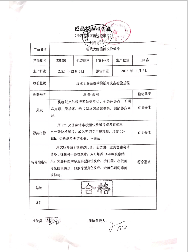 康華 濕式大腸菌群快檢紙片 100份盒 160711012 221201