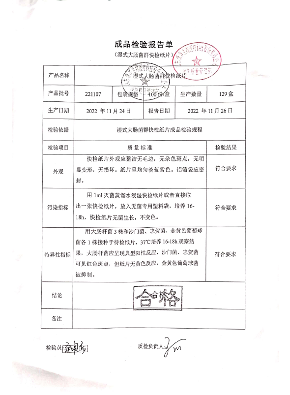 康華 濕式大腸菌群快檢紙片 100份盒 160711012 221107