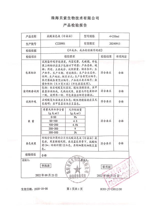 貝索 抗酸染色液(冷染法) 4x250ml C220901
