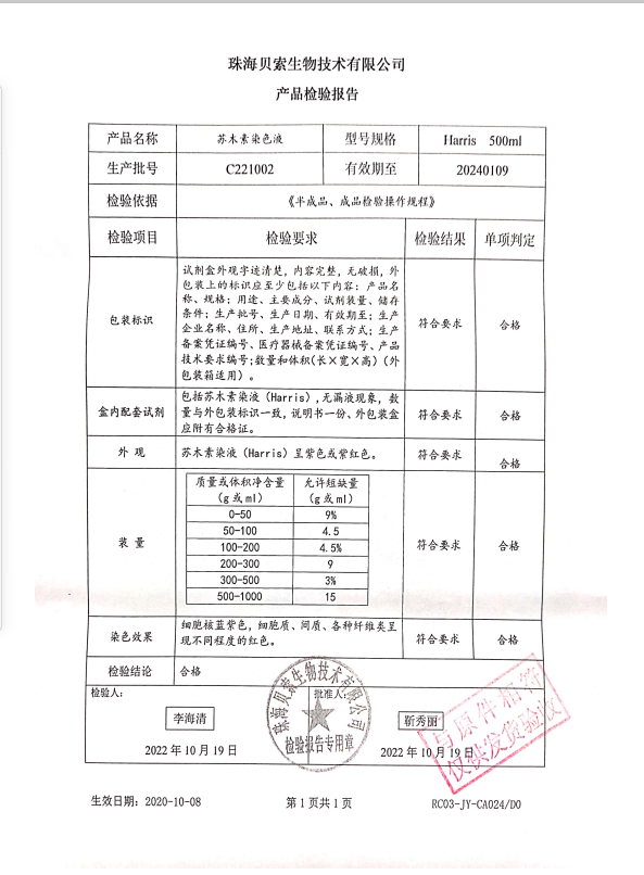 貝索 蘇木素染色液 Harris 500ml BA4097 C221002