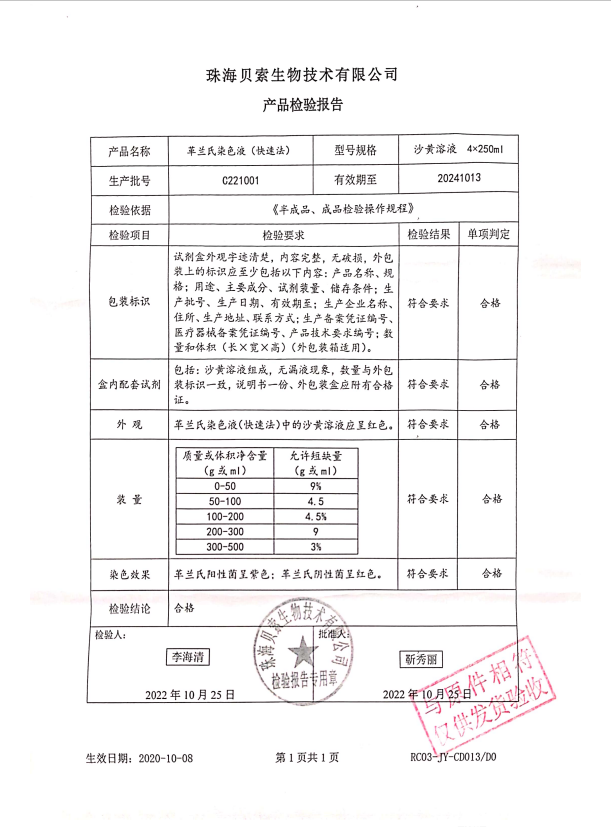 貝索 革蘭氏染色液(快速法) 沙黃溶液 4x250ml BA-4016D C221001