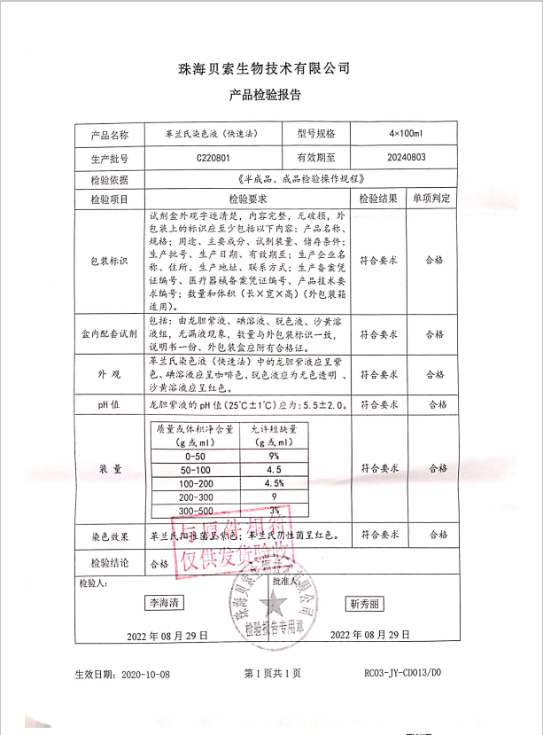 貝索 革蘭氏染色液(快速法) 100ml4盒 C220801