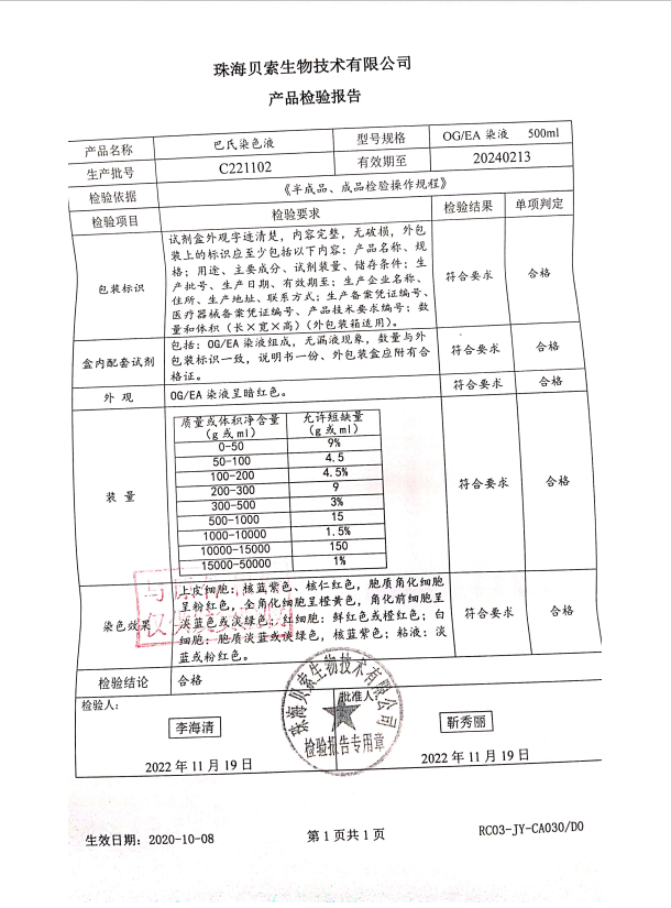 貝索 巴氏染色液 OG-EA 500ml BA4133 C221102