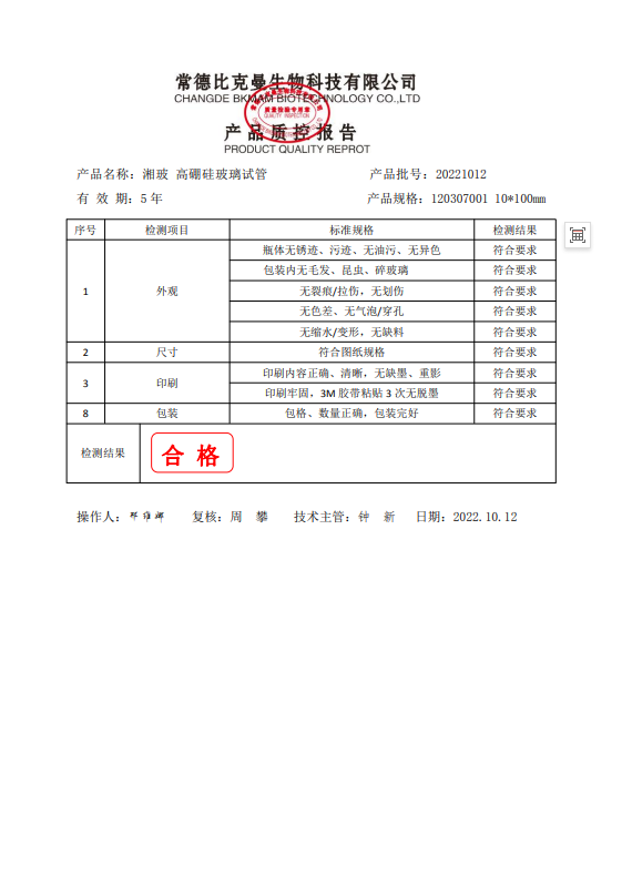 120307001 湘玻? 高硼硅玻璃試管 10x100mm 20221012