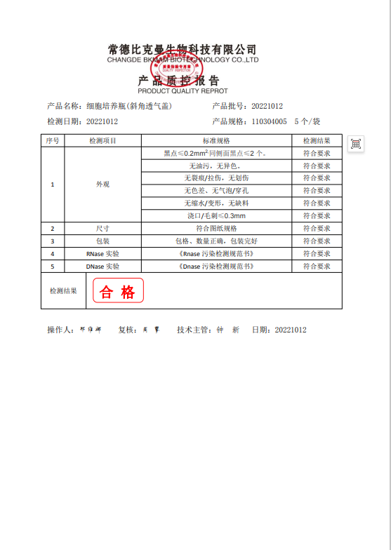 110304005 細胞培養(yǎng)瓶(斜角透氣蓋) T175 5個袋 20221012