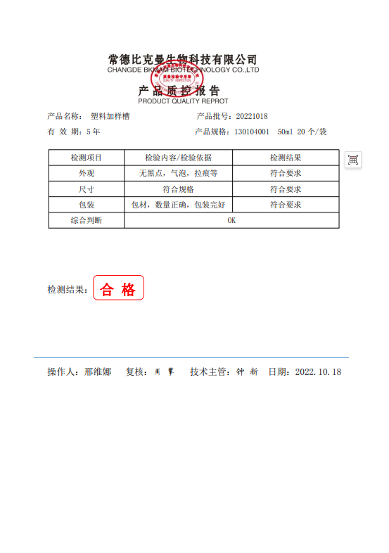130104001 塑料加樣槽 50ml 20個袋 20221018