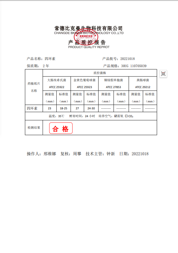 110705039 四環(huán)素 30UG 20片瓶 20221018