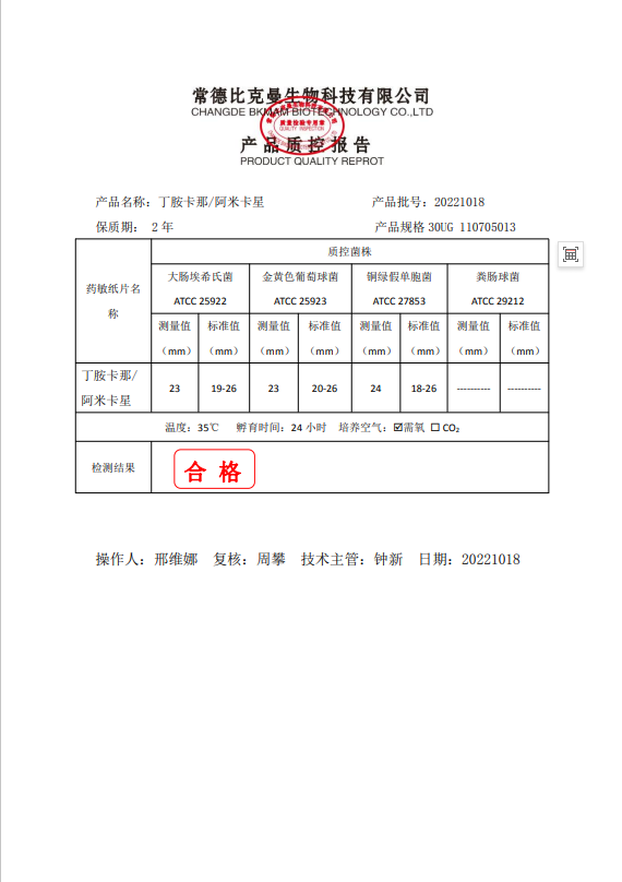 110705013 阿米卡星 30UG 20片瓶 20221018