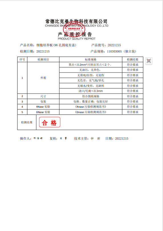 110303005 細(xì)胞培養(yǎng)板(96孔圓底有蓋) (獨(dú)立裝) 20221215