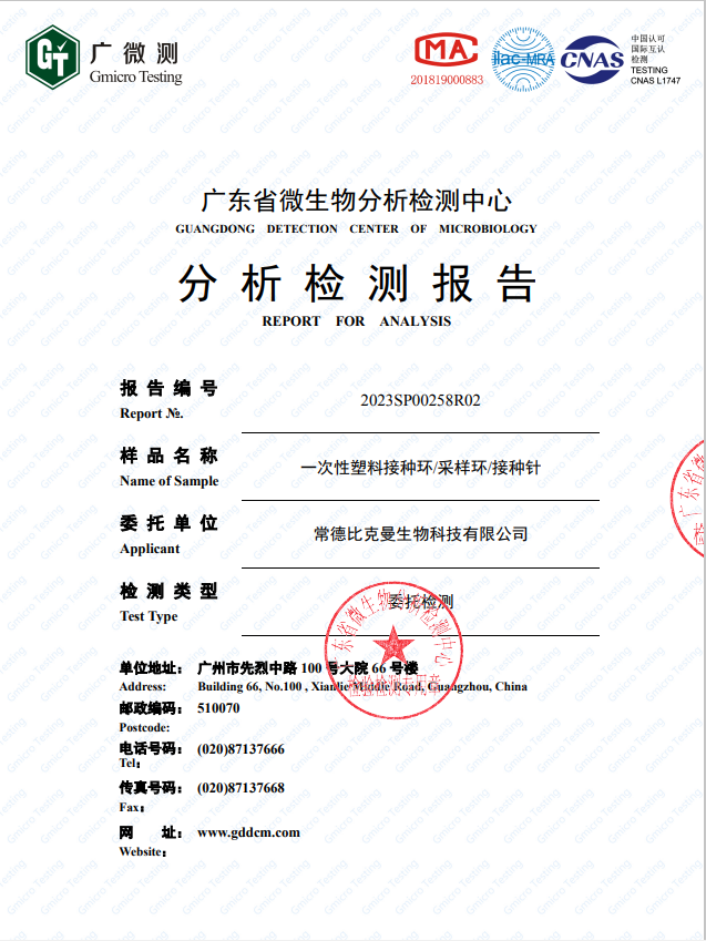 第三方報告 2023SP00258R02-一次性塑料接種環(huán)采樣環(huán)接種針20230106