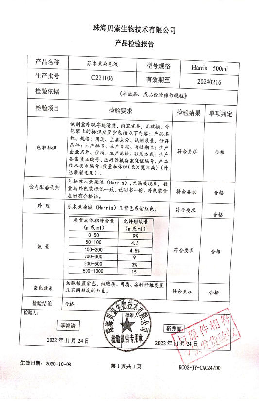 貝索 蘇木素染色液 Harris 500ml BA4097 C221106