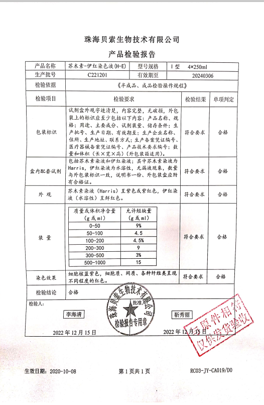 貝索 蘇木素染色液(HE) I型 4x250ml C221201