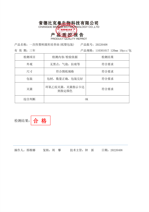 110301017 一次性圓形塑料培養(yǎng)皿 (紙塑包裝) 120mm 10個袋 20220408