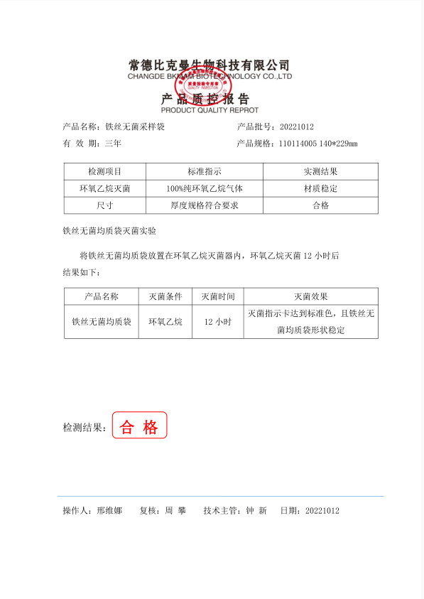110114005 鐵絲無菌采樣袋 140x229 (帶書寫區(qū)域) 100個裝 20221012