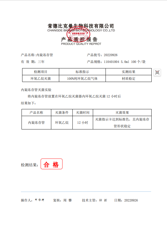110401004 內旋冷凍管 (凍存管) 5.0ml 100個袋 20220926 滅菌報告