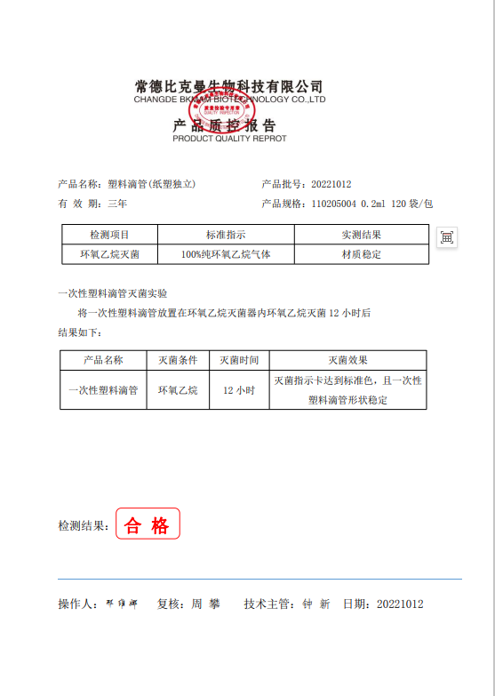 110205004 比克曼生物 塑料滴管(紙塑獨(dú)立) 0.2ml 1支袋 120袋包 20221012