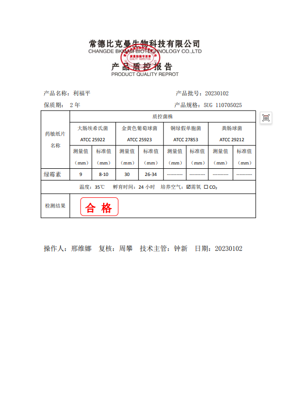 110705025 比克曼生物 利福平 5UG 20片瓶 20230102