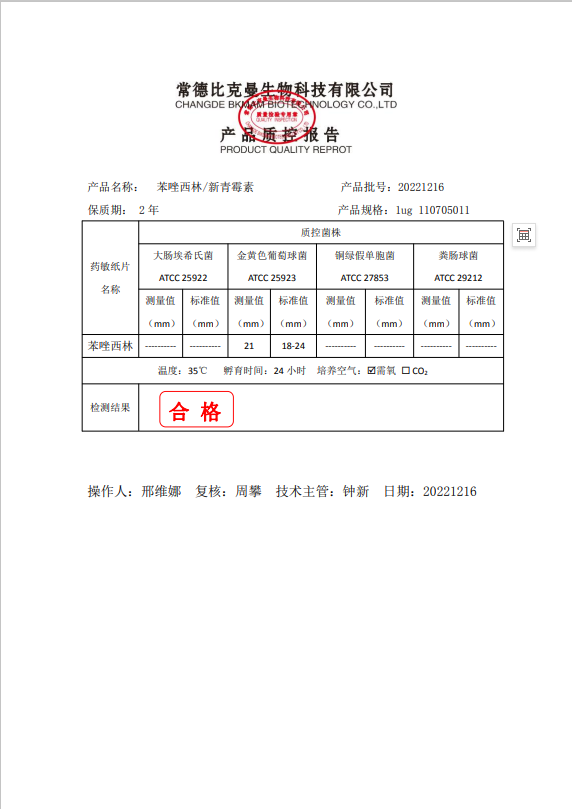 110705011 比克曼生物 苯唑西林 新青霉素 1ug 20片瓶 20221216