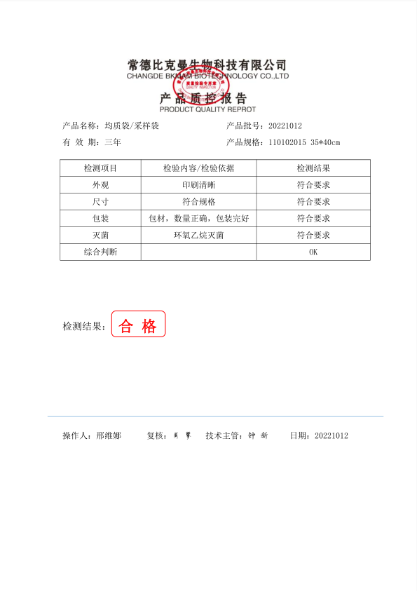 110102015 比克曼生物 立式無菌采樣袋 35x40 (帶壓條) 50個(gè)裝 20221012