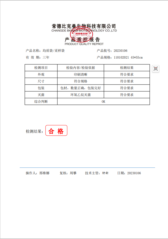110102021 比克曼生物 無(wú)菌采樣袋 45x55 (帶壓條) 50個(gè)裝 20230106