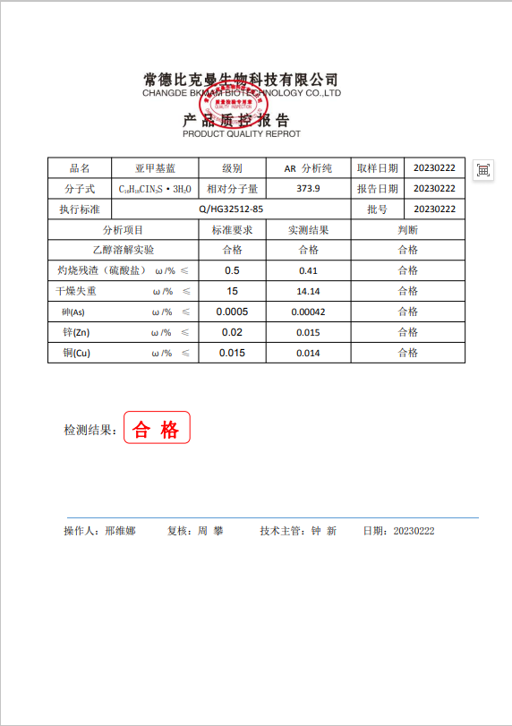 110702059 比克曼生物 亞甲基藍 AR分析純 25g 20230222