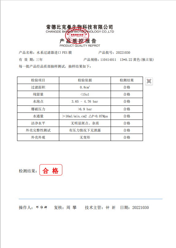 110414011 比克曼生物 水系過濾器 進口PES膜 13x0.22 黃色 (獨立裝) 20221030