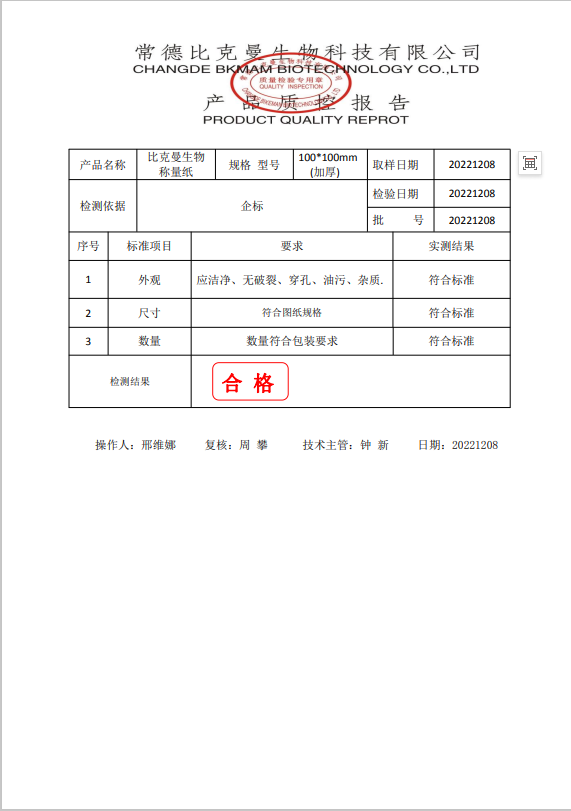 110415005 比克曼生物 稱量紙 100x100mm(加厚) 20221208