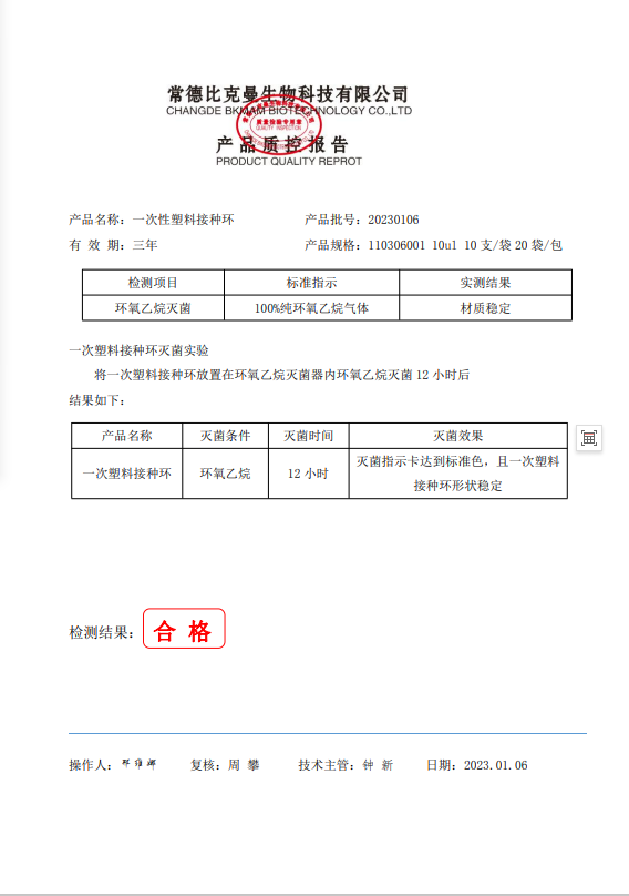 110306001 比克曼生物 一次性塑料接種環(huán) 10ul (10支裝) 10支袋20袋包 20230106