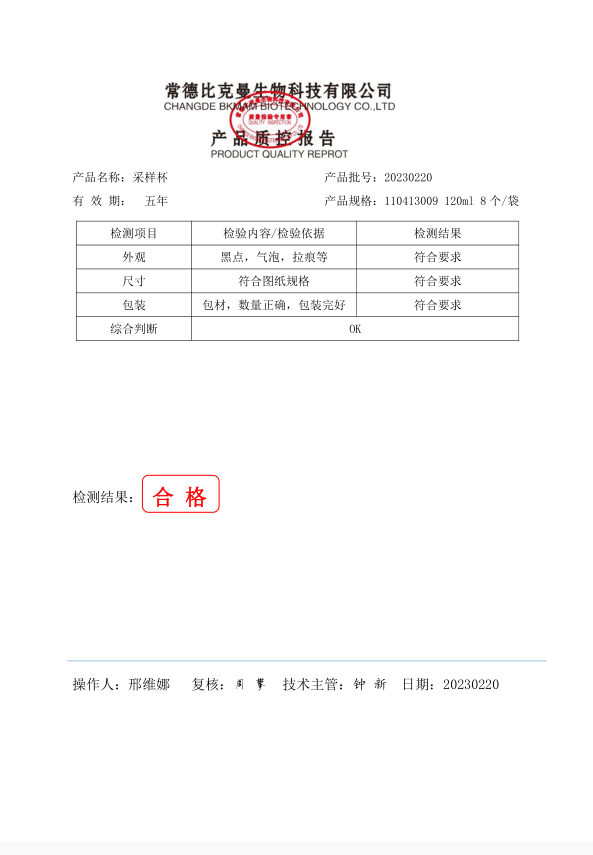 110413009 比克曼生物 采樣杯 120ml 8個(gè)袋 20230220