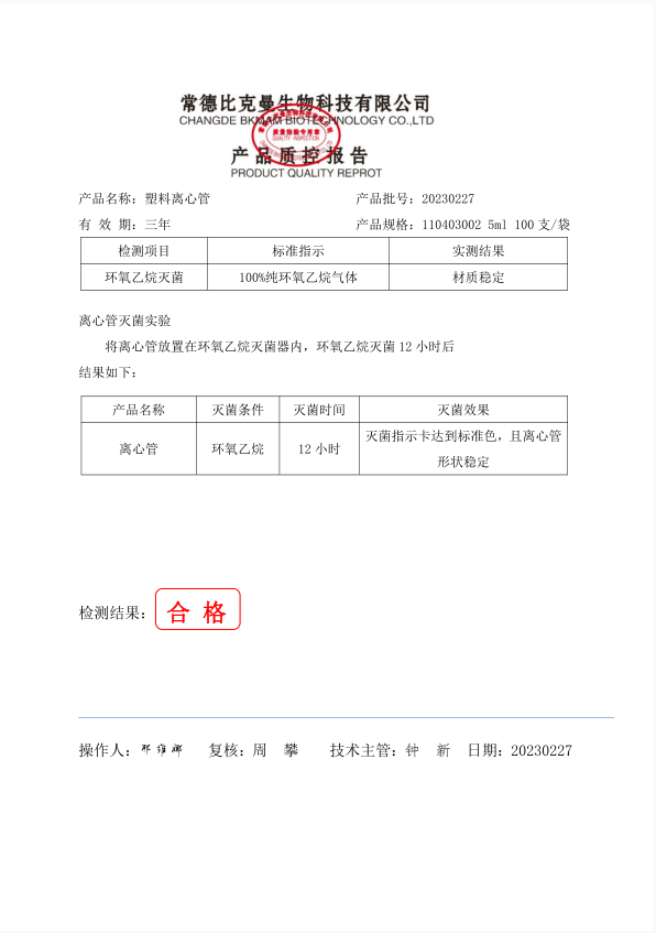 110403002 比克曼生物 離心管 翻蓋 5ml 100支裝 20230227