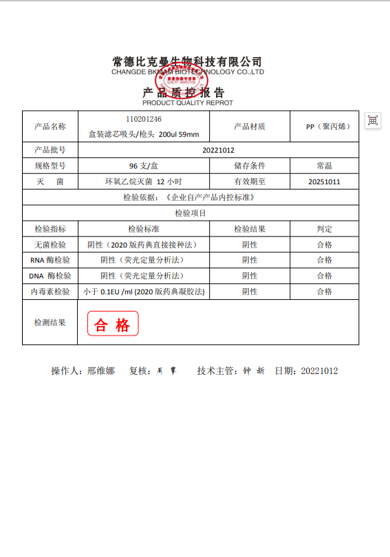 110201246 比克曼生物 盒裝濾芯吸頭 200ul加長(zhǎng) 59mm 20221012