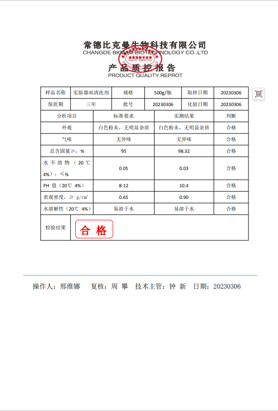 110702045 比克曼生物 實(shí)驗(yàn)器皿清洗劑 500g瓶 20230306