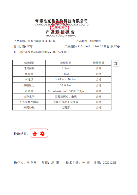 110414011 比克曼生物 水系過(guò)濾器 進(jìn)口PES膜 13x0.22 黃色 (獨(dú)立裝) 20221225