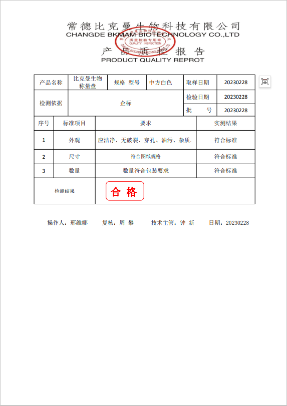 110406007 比克曼生物 塑料稱(chēng)量盤(pán)(中方白色) 250只袋 20230228