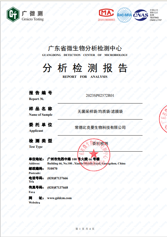 第三方報告 2023SP02572R01-無菌采樣袋均質(zhì)袋濾膜袋20230310