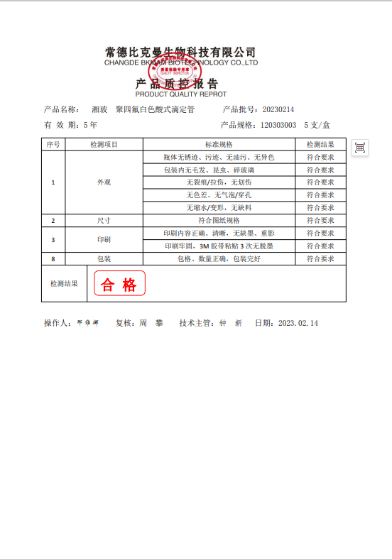 120303003 湘玻 聚四氟白色酸式滴定管 50ml 5支盒 20230214