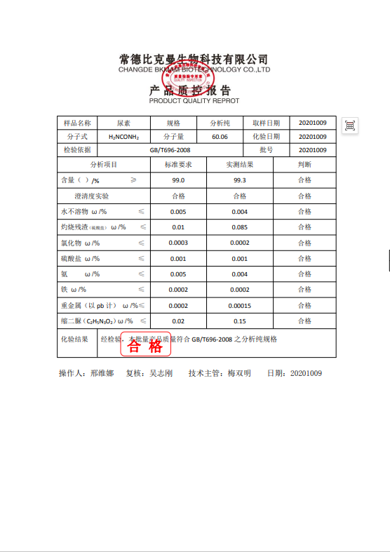 110702036 比克曼生物 尿素 AR 分析純 250g瓶 20201009