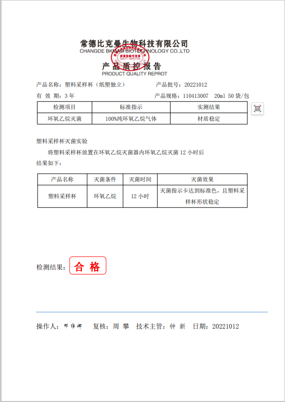 110413007 比克曼生物 采樣杯 (紙塑獨立) 20ml 1個袋 50袋包 20221012