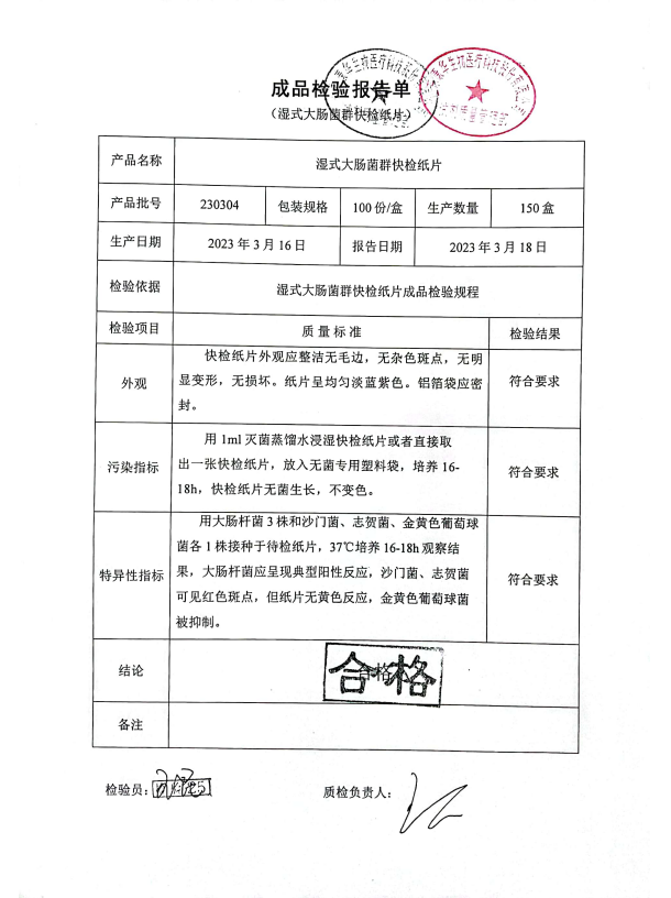 康華 濕式大腸菌群快檢紙片 100份盒 160711012 230304