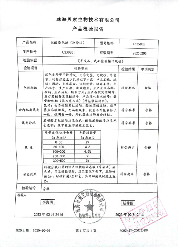 貝索 抗酸染色液(冷染法) 4x250ml C230201