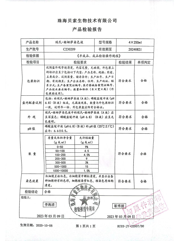 貝索 瑞氏-姬姆薩染色液 250mlx4 C230209