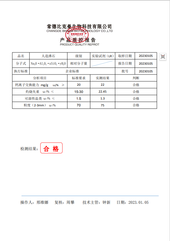 110702042 比克曼生物 人造沸石 實驗試劑 LR 250g瓶 20230105