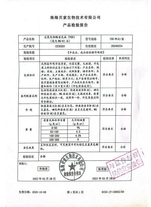 過氧化物酶染色液(POX)(氧化 WG-KI法) 100測試盒 BA4110B C230201