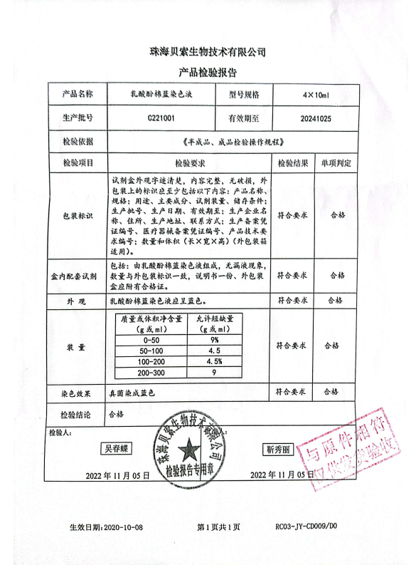貝索 乳酸酚棉藍(lán)染色液 4x10ml BA4124 C221001