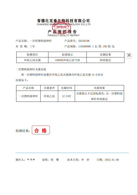 110306006 比克曼生物 一次性塑料接種針 (獨(dú)立裝) 1支袋100袋包 20230106