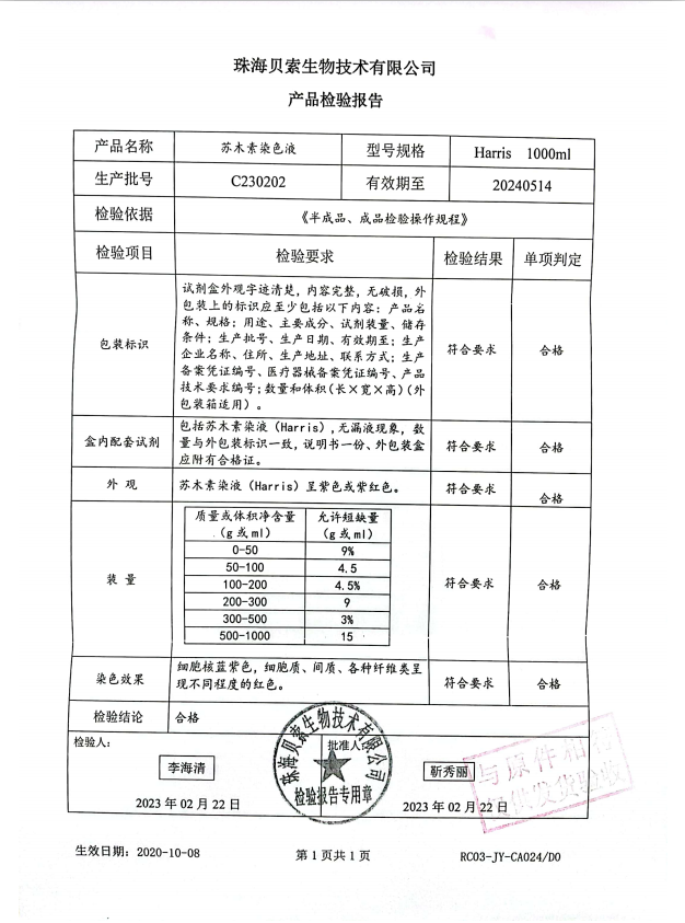 貝索 蘇木素染色液 Harris 1000ml BA4041 C230202