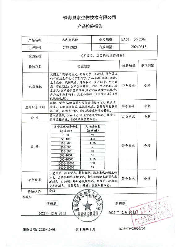 貝索 巴氏染色液 EA-50 3x250ml BA4135A C221202