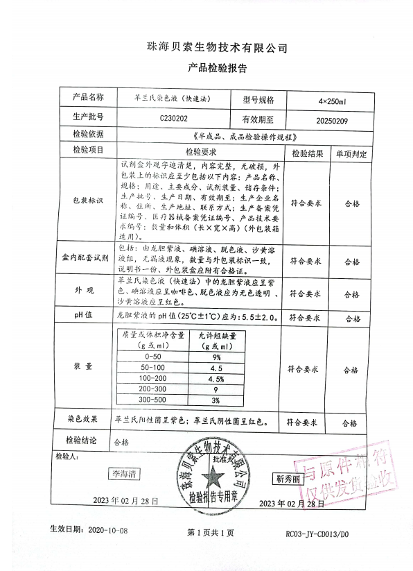 貝索 革蘭氏染色液(快速法) 250ml4盒 BA4012 C230202