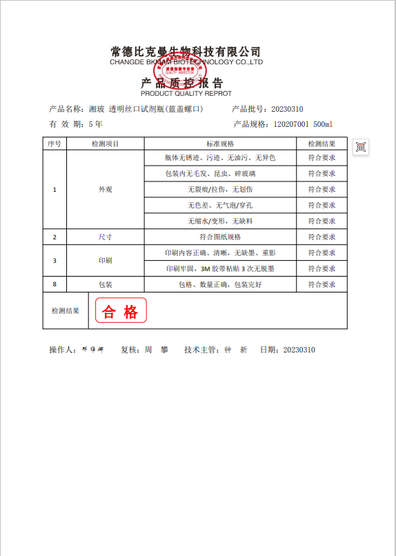 120207001 湘玻 透明絲口試劑瓶(藍蓋螺口) 500ml 8個盒 2023010