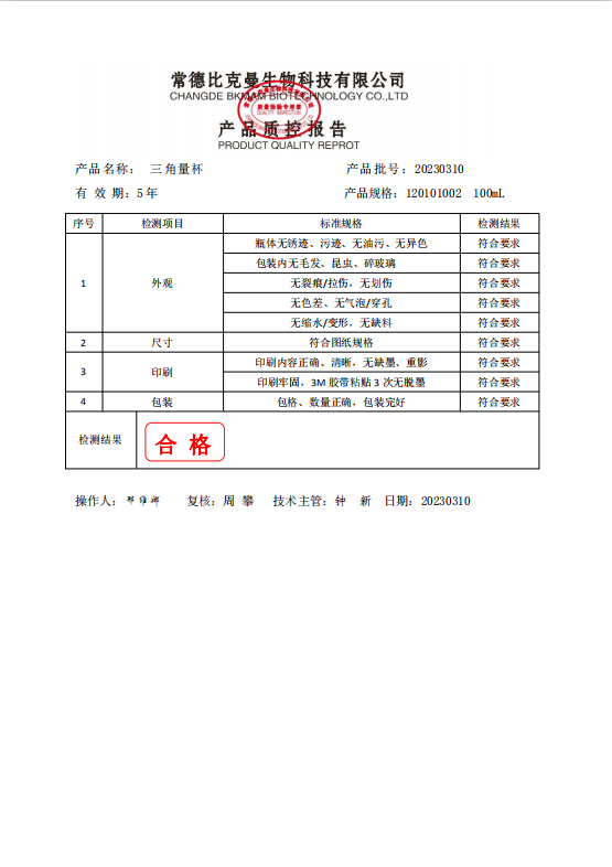 120101002 湘玻 三角量杯 100ml(玻璃) 10個盒 20230310